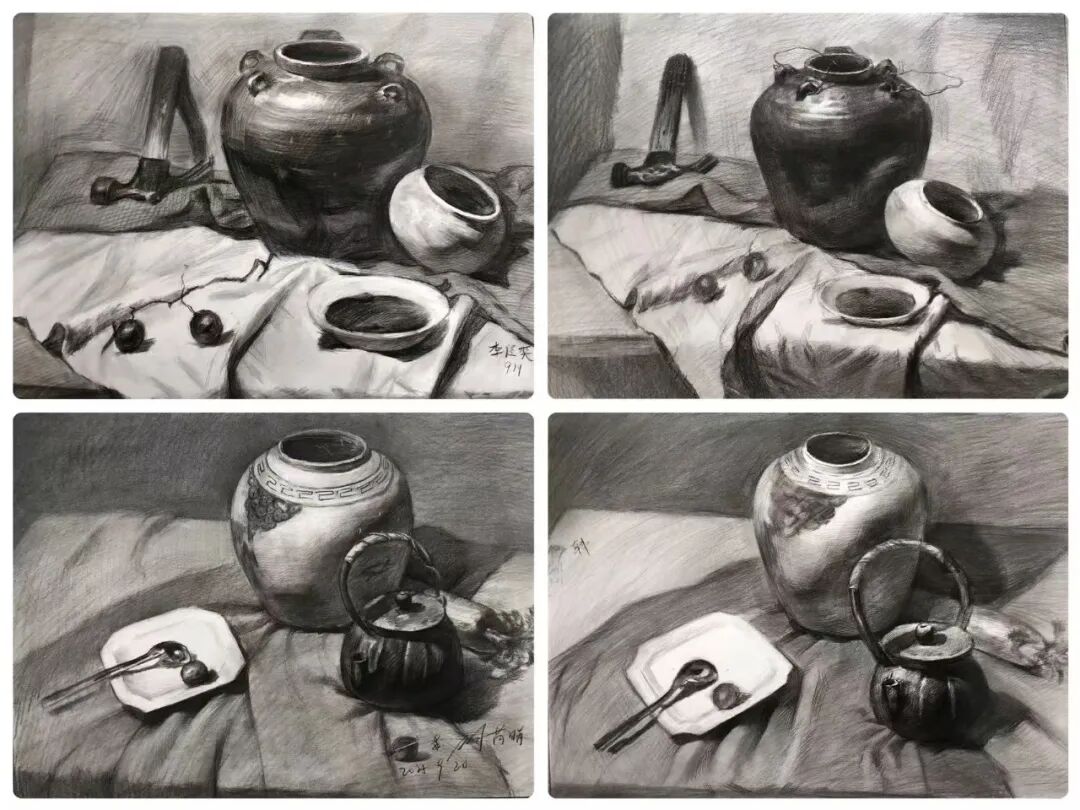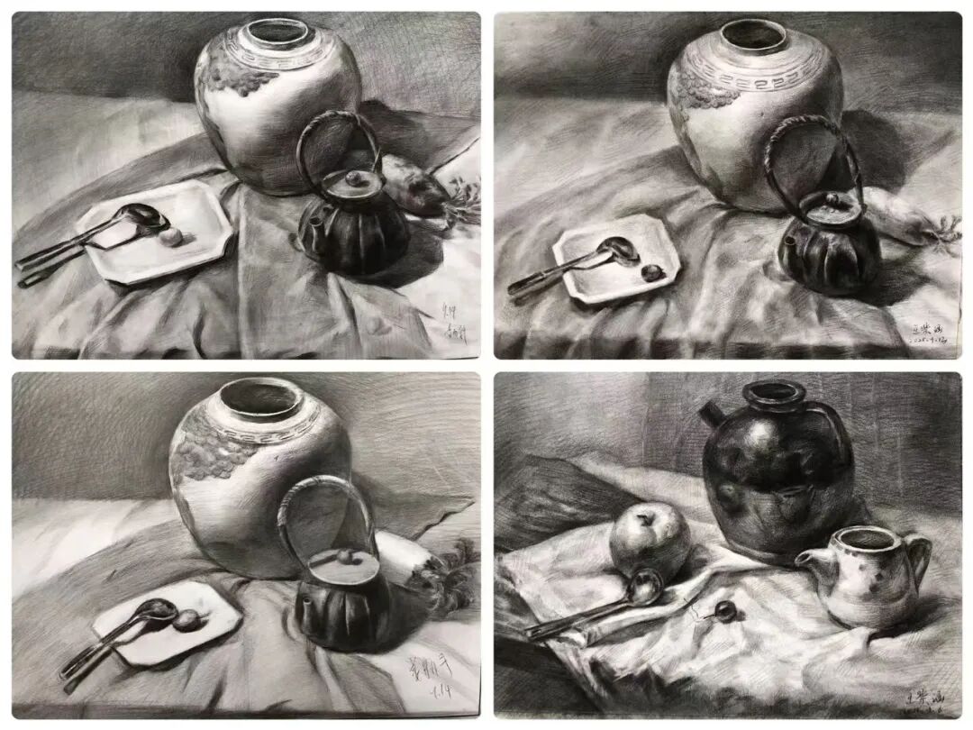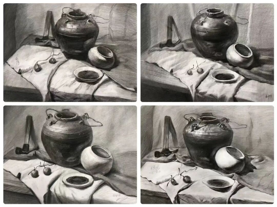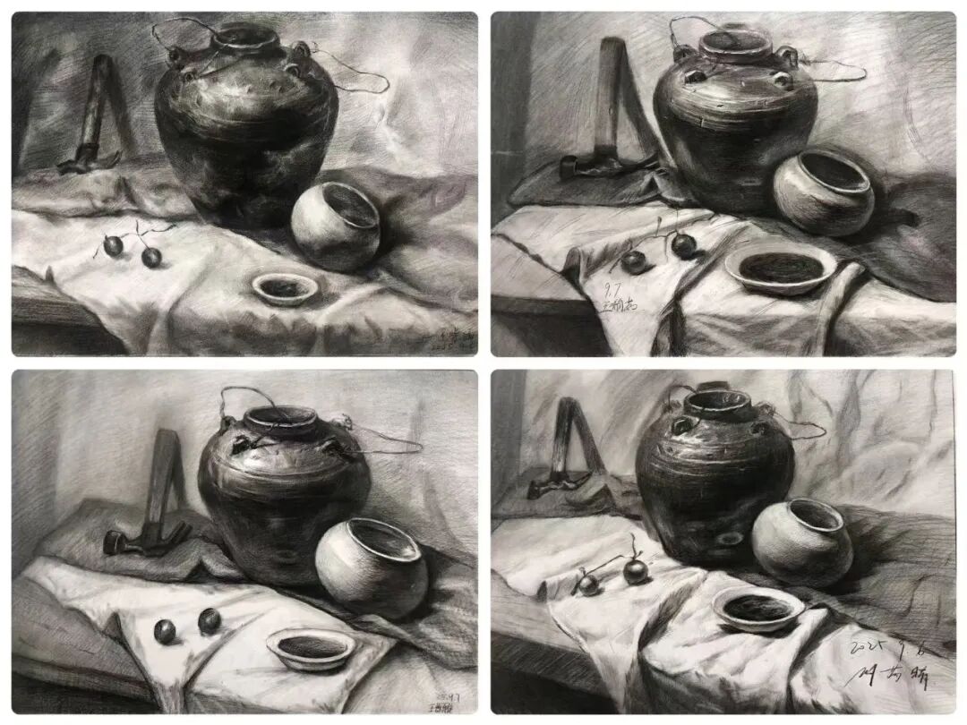 秋日时光翩然而过,千墨画室的教室里留下了同学们专注的身影和无数进步的印记。本阶段,我们以素描为核心,展开从基础到进阶的系统性探索。静物单体训练是素描的根基,它强制学生抛弃“概念化”的认知,学会如何用理性的眼光分析复杂形态,理解物体的内在结构。这是解决“形不准”问题的关键一步。静物组合训练将学生的思维从“单个”引向“整体”,是培养画面组织能力和艺术修养的重要环节。它直接关系到未来创作、风景写生等更高阶课程的表现力。石膏五官结构清晰、色调稳定,是理解人像结构的“黄金标准”。它能帮助学生掌握人像的核心密码,为未来的石膏像及人像素描打下不可动摇的坚实基础。本学期我们始终坚持“写生”与“临摹”相结合的教学方法。写生时,学生们直面对象,锻炼眼、脑、手的协调;临摹优秀范画时,则像与一位无声的老师对话,潜心研究其处理手法和艺术语言。两种状态交替,让学生既保持了创作的鲜活感,又吸收了前人的宝贵经验。这种结合的效果是显著的。学生们的写生作品明显减少了“野路子”,多了“法度”和“理法”;而在自己的创作中,也能看到他们从临摹中学到的技巧被巧妙地运用。“师古人,师造化”。写生培养观察与创造能力,临摹提升审美与技法水准。二者结合,是艺术学习中*有效、*科学的路径,避免了闭门造车,也防止了盲目抄袭。素描是理性的思考,也是感性的表达,它是一切造型艺术的基础。本学期的课程体系,环环相扣,旨在为大家构建一个坚实、系统的造型能力框架。希望同学们带着这份收获,在未来的艺术道路上走得更稳、更远。