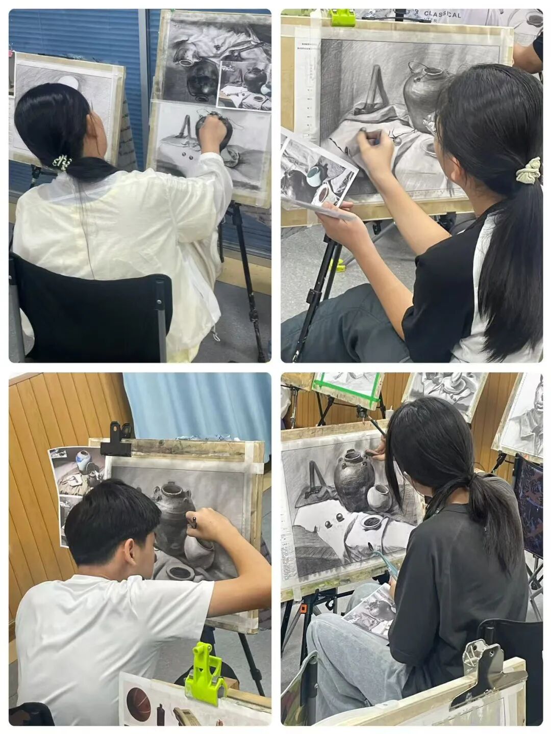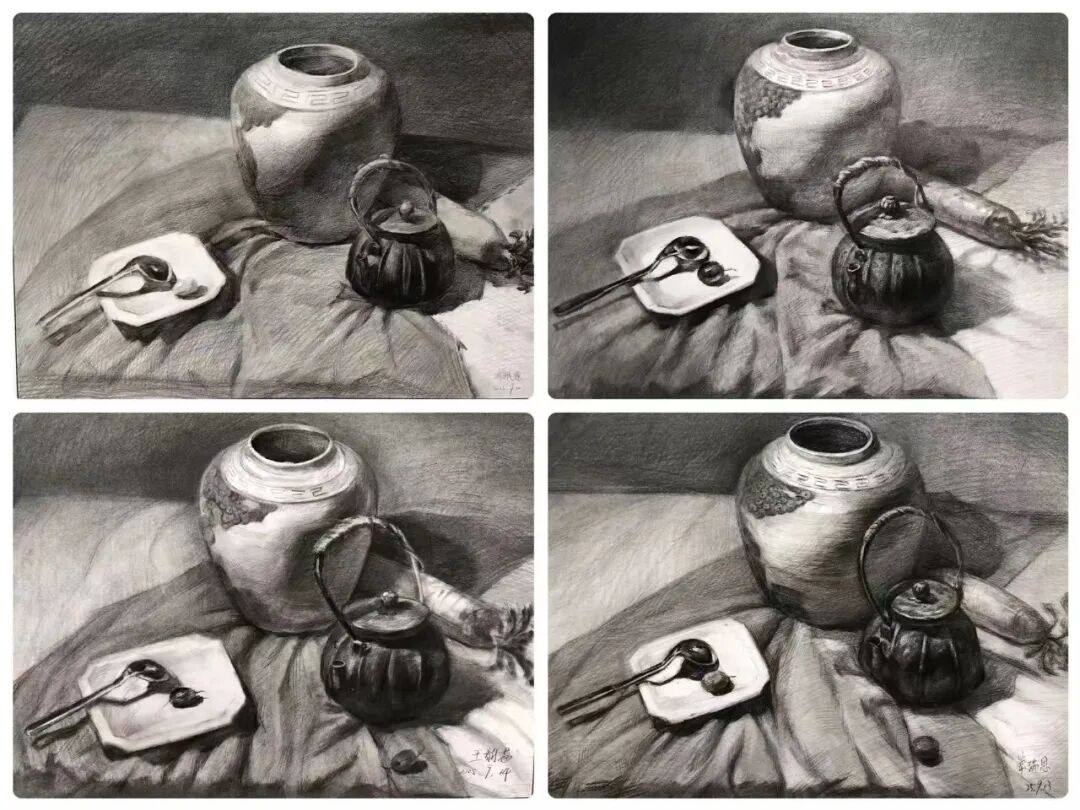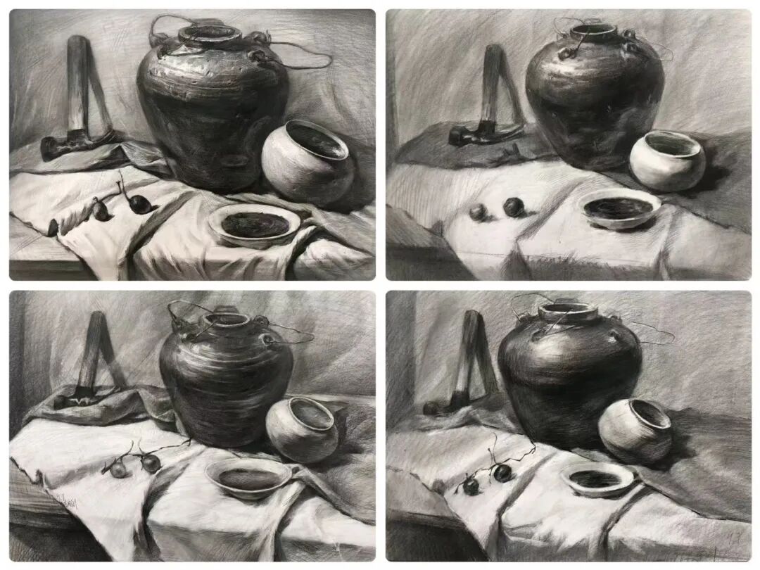 秋日时光翩然而过,千墨画室的教室里留下了同学们专注的身影和无数进步的印记。本阶段,我们以素描为核心,展开从基础到进阶的系统性探索。静物单体训练是素描的根基,它强制学生抛弃“概念化”的认知,学会如何用理性的眼光分析复杂形态,理解物体的内在结构。这是解决“形不准”问题的关键一步。静物组合训练将学生的思维从“单个”引向“整体”,是培养画面组织能力和艺术修养的重要环节。它直接关系到未来创作、风景写生等更高阶课程的表现力。石膏五官结构清晰、色调稳定,是理解人像结构的“黄金标准”。它能帮助学生掌握人像的核心密码,为未来的石膏像及人像素描打下不可动摇的坚实基础。本学期我们始终坚持“写生”与“临摹”相结合的教学方法。写生时,学生们直面对象,锻炼眼、脑、手的协调;临摹优秀范画时,则像与一位无声的老师对话,潜心研究其处理手法和艺术语言。两种状态交替,让学生既保持了创作的鲜活感,又吸收了前人的宝贵经验。这种结合的效果是显著的。学生们的写生作品明显减少了“野路子”,多了“法度”和“理法”;而在自己的创作中,也能看到他们从临摹中学到的技巧被巧妙地运用。“师古人,师造化”。写生培养观察与创造能力,临摹提升审美与技法水准。二者结合,是艺术学习中*有效、*科学的路径,避免了闭门造车,也防止了盲目抄袭。素描是理性的思考,也是感性的表达,它是一切造型艺术的基础。本学期的课程体系,环环相扣,旨在为大家构建一个坚实、系统的造型能力框架。希望同学们带着这份收获,在未来的艺术道路上走得更稳、更远。